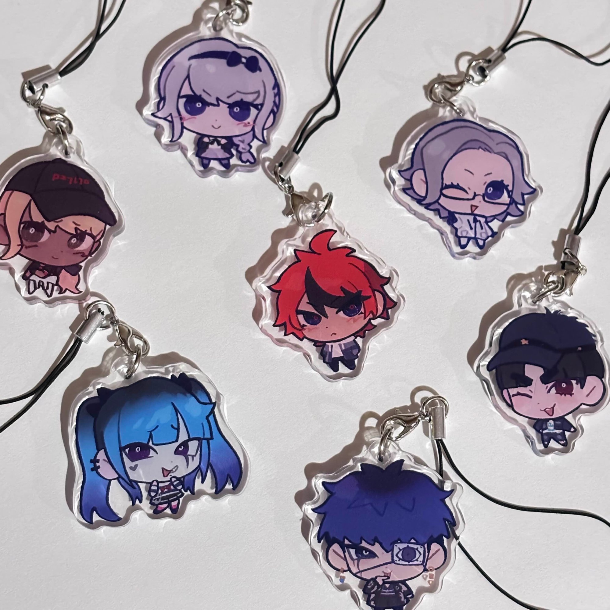1.5in mini double sided acrylic keychains with a phone charm chord strap...thingy. Use the code UGLYTAKUMI at checkout to get 15% off when you order 2 or more!