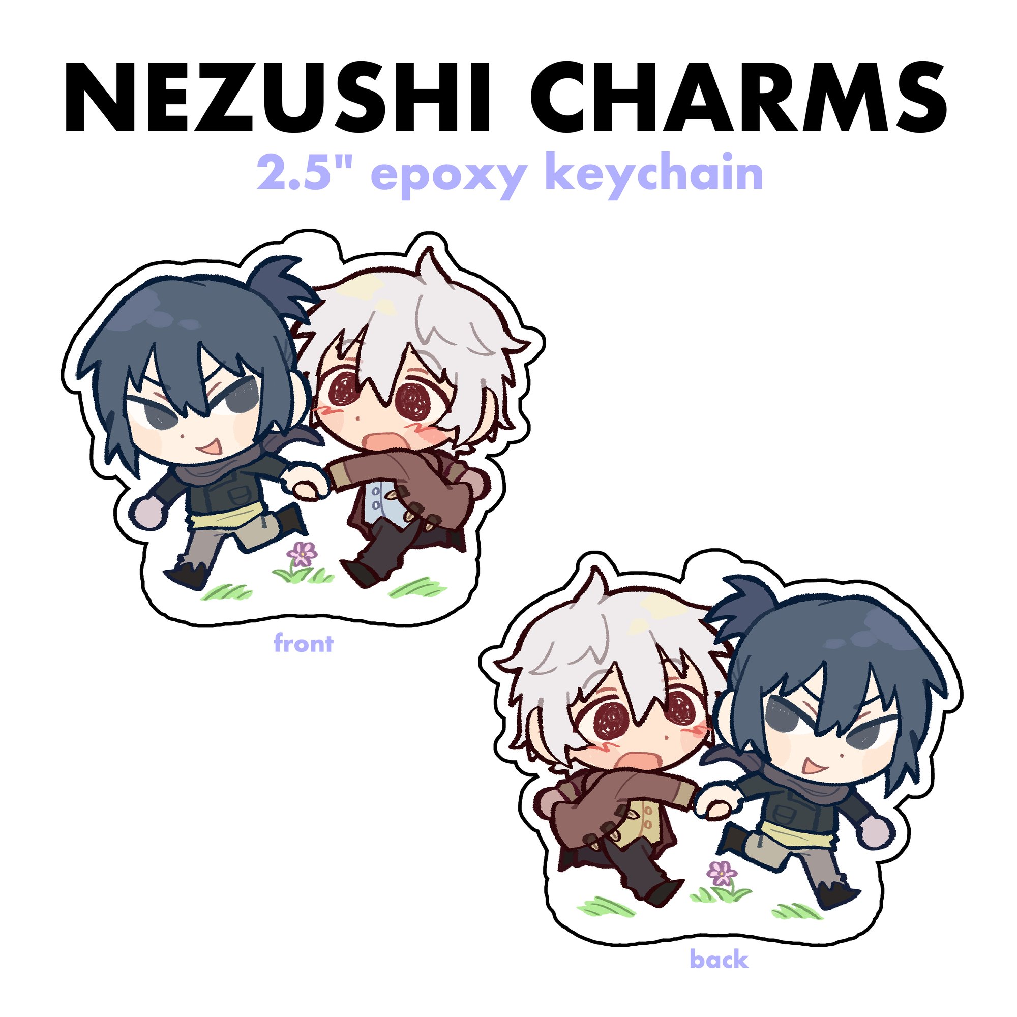 2.5in epoxy coated double sided charms with a different design on the back. Has a purple flower clasp.
