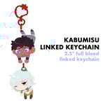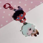 2.5" full bleed linked double sided keychain of Kabru and Mithrun with a red tomato clasp (though I guess it's technically a strawberry...but lets use our imagination.)